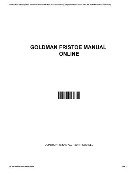 Read Online GOLDMAN FRISTOE MANUAL ONLINE Hardcover ManyBooks